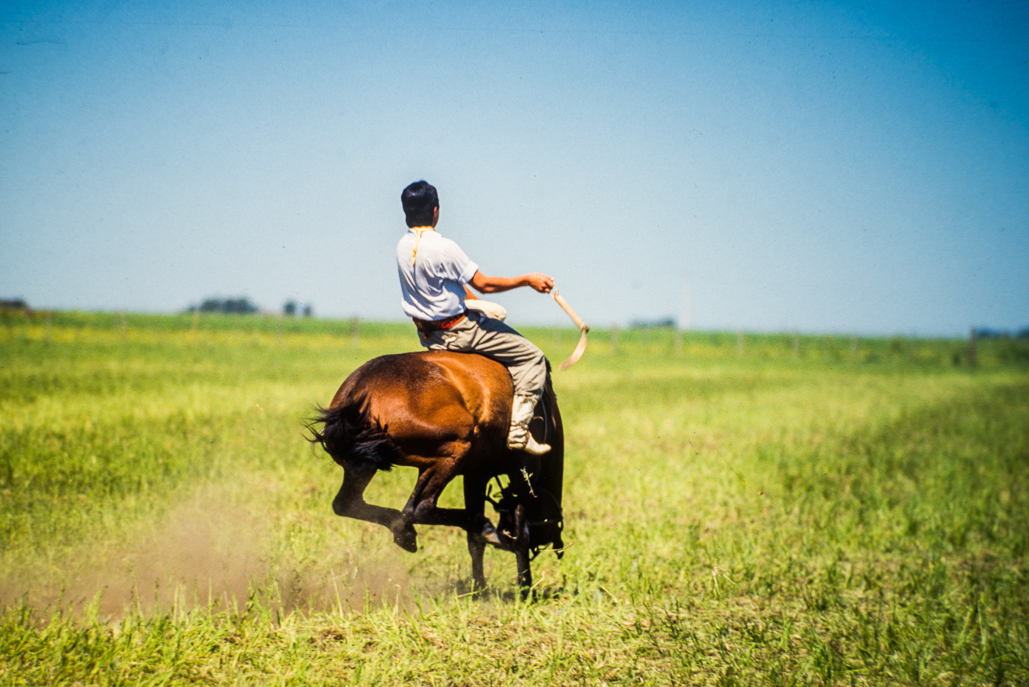 ARGENTINE - PIGUE - AVEYRONNAIS Français installés depuis un siècle et demi.Lors d'une Doma (rodéo) l'apadrinador protège le gaucho.