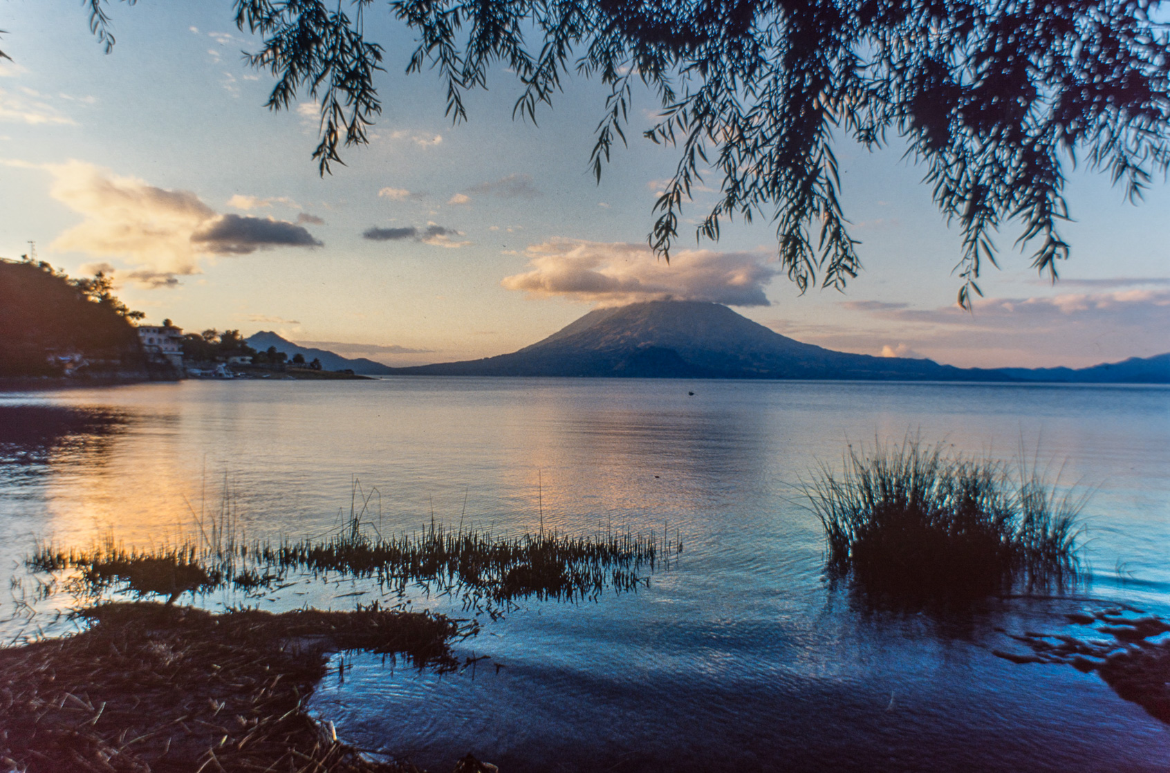 GUATEMALA Panajachel. Vue sur le lac Atitlan et les deux volcans.