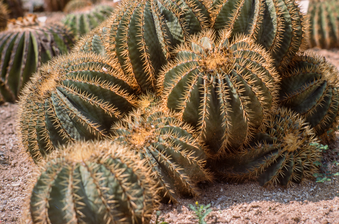 ESPAGNE - BARCELONE Ce jardin de cactus est un des plus grands d'Europe. Il se situe sur la colline Monjuich. ECHINOCACTUS GRUSONI