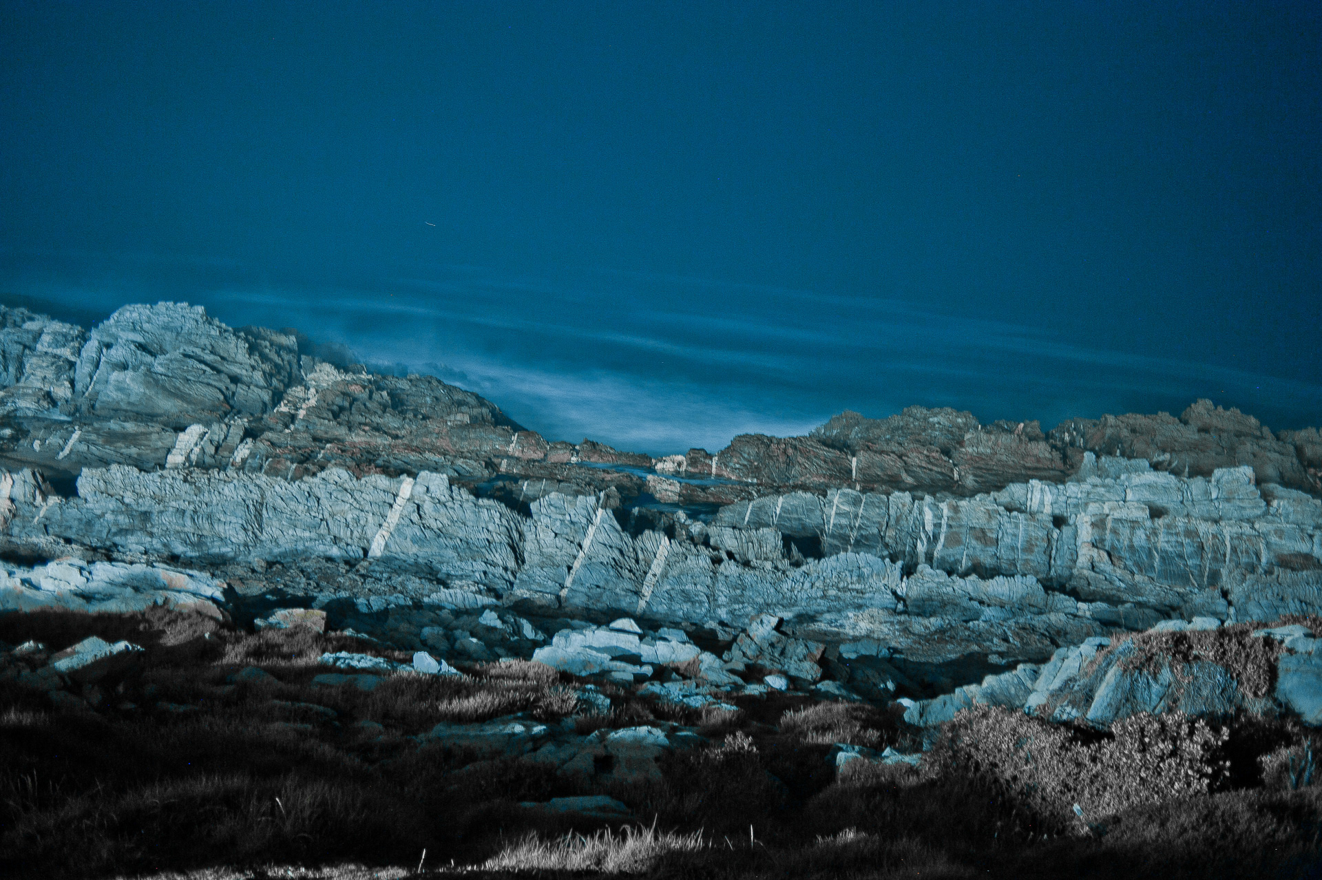 AFRIQUE DU SUD Tsitsikamma National Park - Storms River Mouth Rest Camp. Plage de rochers la nuit.
